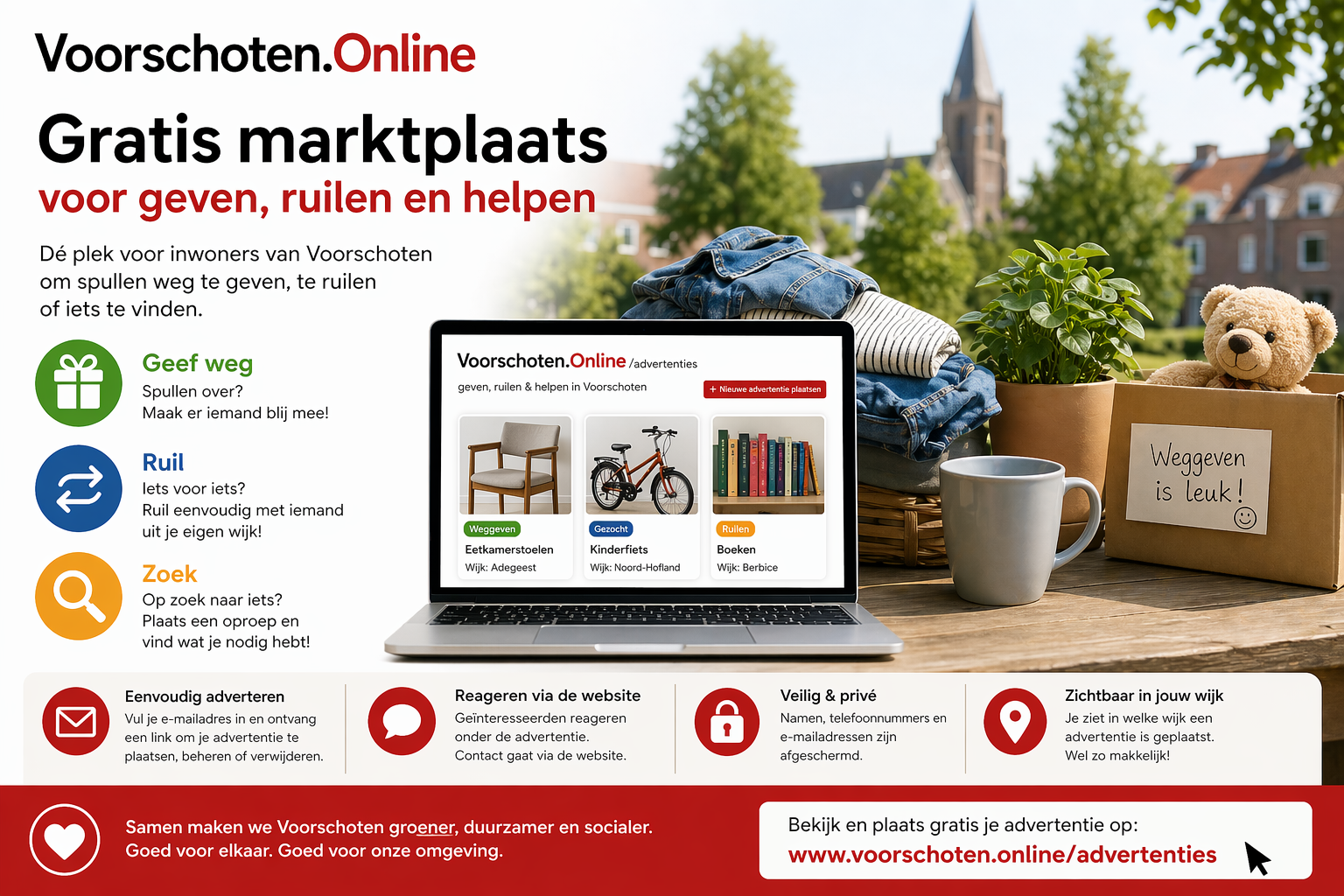 Voorschoten heeft er een bijzonder initiatief bij: op Voorschoten.Online is vanaf nu een gratis marktplaats beschikbaar voor iedereen. Maar verwacht geen traditionele koop- en verkoopsite — hier draait het niet om geld, maar om delen, ruilen en elkaar helpen.